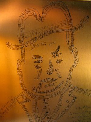 Self-portrait by Darius Milhaud, owned by Dave and Iola Brubeck. Great story at The Rest Is Noise: Milhaud comes home. Brubeck named his oldest son Darius, by the way.