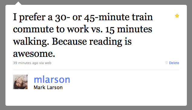Constraint in everyday life. A lesson learned as I spent a couple weeks dog- and house-sitting barely a mile from the office. In theory my time not-on-a-train in the mornings and afternoons could have converted to reading time like usual. In theory. If I had any discipline. And thus I remind myself that less important than the amount time I have–a shit-ton, if you know where to look (as in, let us say, around lunchtime; before, during and right after breakfast when I’m usually just kind of sighing and limping around the house; and pretty much every day from 6pm to midnight)–is the structure I give it.