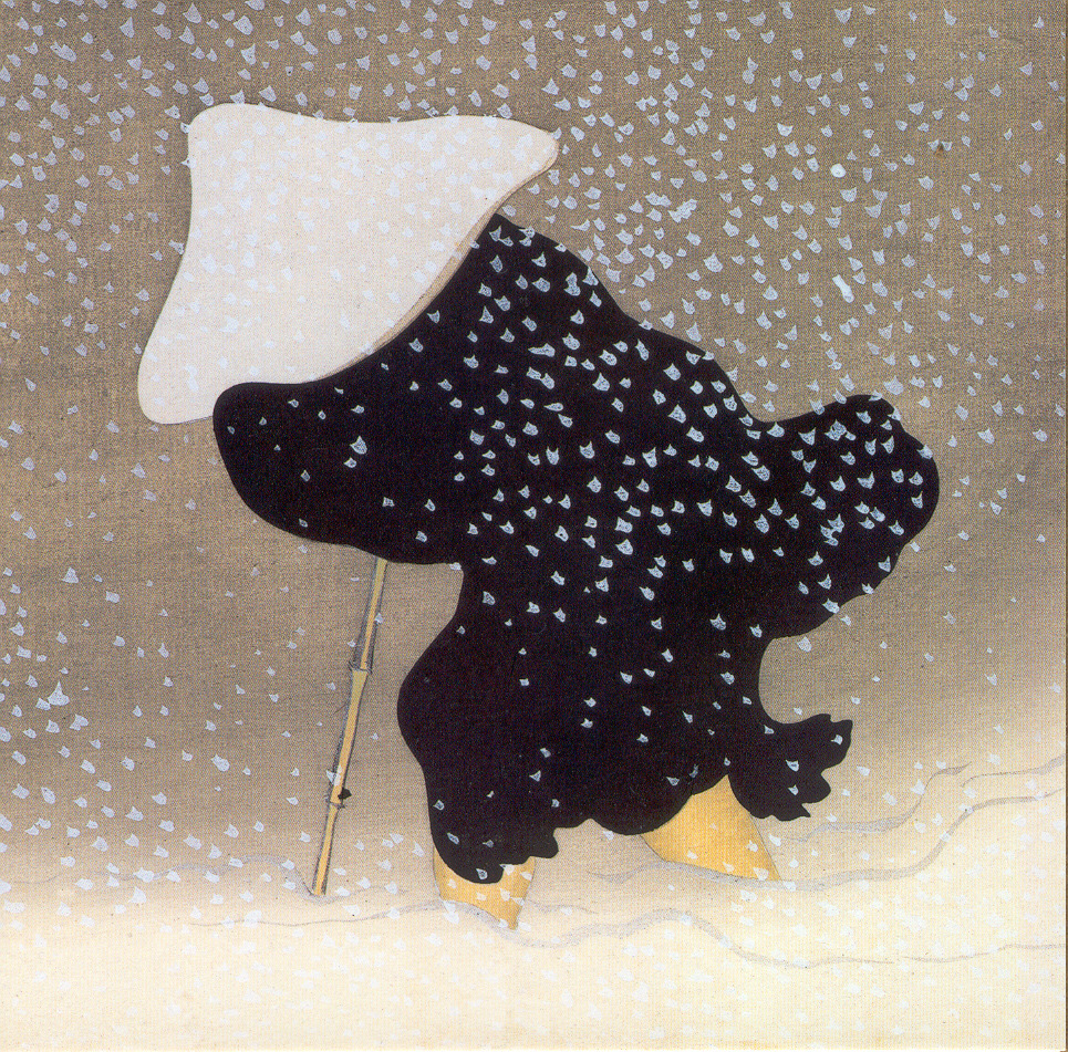 Detail from “Snow in the Countryside” (1909), a woodblock print by Kamisaka Sekka.