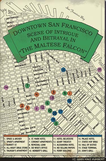 Watching The Maltese Falcon last month inspired me to read the original. It’s cool to see the names of streets and places I recognize. When I visited SF last year, my hotel was right in the thick of it.
