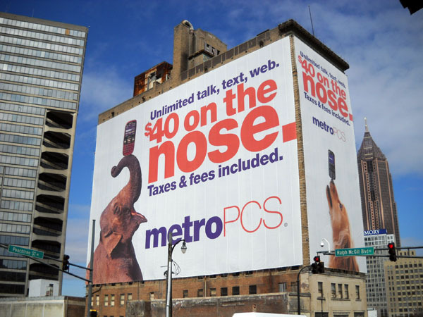 Subtlety, thy name is Metro PCS. Medical Arts Building billboard rears ugly head — again. “Building advertisements can be no larger than 200 square feet… And yes, it appears it’s just a tad bit larger than 200 square feet.”