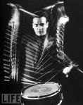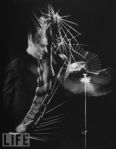 Drummer Gene Krupa performing at Gjon Mili’s studio. NYC, 1941