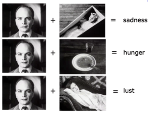 The implication is that viewers brought their own emotional reactions to this sequence of images, and then moreover attributed those reactions to the actor, investing his impassive face with their own feelings. Kuleshov believed this, along with montage, had to be the basis of cinema as an independent art form.